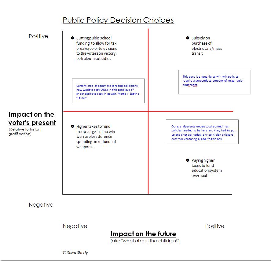 I just finished reading a piece by the always thought provoking Paul Krugman of the NYT. An Article entitled ‘Eat the Future’ , talking about how the GOP is sacrificing the future for the present over in US. It bought back to mind an article a while ago about free TV sets distribution by a corrupt party (are there any other?) that won elections in Tamil Nadu, India. Which I could parallel park next to an op-ed column ‘Serious in Singapore’ by Thomas Friendman published on January 29 about Singapore’s investment into the educational sphere.